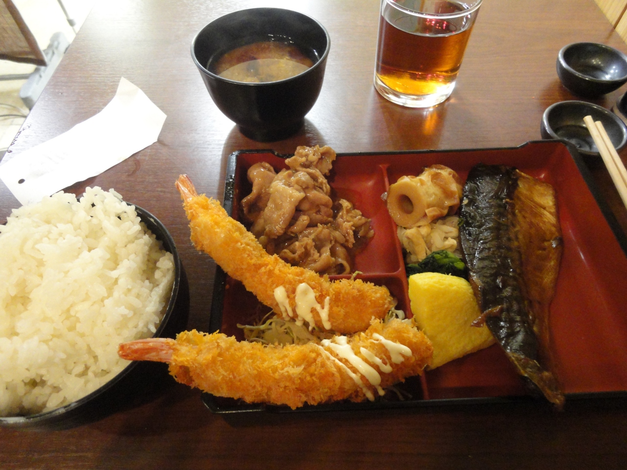 大阪駅前ビル地下1階の飲食街にある居酒屋さん。昼時は入口付近にズラリとサンプルを並べ、一見大衆食堂のような店構えでワンコインランチをだしてくれる。食べたのは「お弁当」で、煮サバは普通以上に良い味付けであった。以前に食べた「海老天丼」も香り良く、「牛スジぼっかけカレーうどん(ミニ)のセット」は満腹になる。