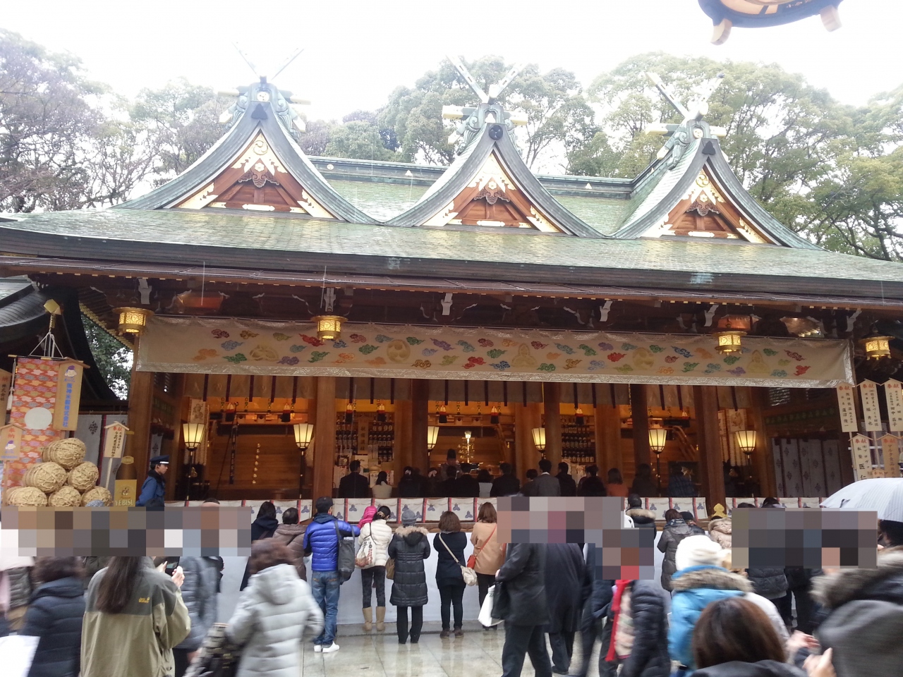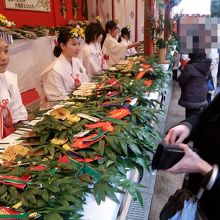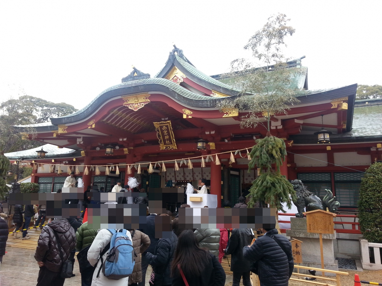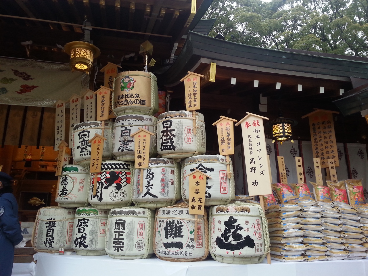 西宮神社はえびす宮総本社であり毎年1月9〜11日の3日間は多くの参拝客で賑わい、境内も歩行者道路となる周辺道路も様々な屋台が軒を連ね活気づく。本殿横に祭られた今年の大マグロの重量は260?であった。参拝は夕方から夜にかけて満員電車のような人混みで溢れるので朝が狙い目である。