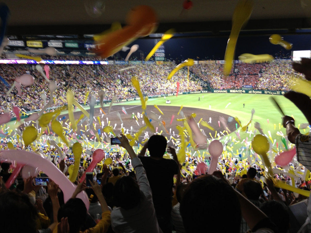 9月の巨人戦阪神が勝ちました2013年阪神の試合を見に行って6勝7敗2引き分けでした去年も負け越して僕が行けば負けるのかな負け試合でも7回の風船上げだけはやって帰ってきますものすごいものがありますよ一度見れば阪神ファンのすごさがわかります
