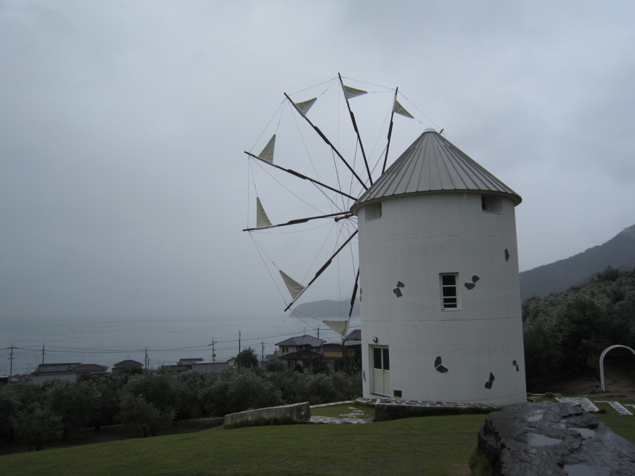 ガイドさんが案内しがてら小豆島のオリーブについて説明してくださり、風車のフォトポイントも教えてくれてばっちり写真を撮ってくれました。