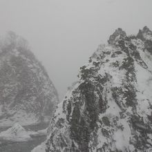 JR室蘭本線の礼文~大岸間の海岸線は大きな岩が海岸線に並ぶ奇岩の名所です。波打ち際を通る道路も狭く、一部は一車線となり、山側の絶壁のがけ崩れ防止の工事が頻繁に行われています。昭和5年(1930年)に北海道旅行で同地を訪れた与謝野鉄幹・晶子夫妻も列車の車窓からの眺めに感動し、多数の句を残したとのことですが、列車に乗っていてもそこまで良いとは感じられません。それもそのはず、付近はほとんどトンネルで、礼文華海岸のあたりも昭和50年(1975年)に現在の長いトンネルに路線が切り替えられたとのことです。それまでは車窓からも奇岩を間近で眺められたようですが、現在は海岸線の道路を行かなくてはなりません。それも隘路で落石の危険もあるところ、距離はありますが、車よりも徒歩の方がゆっくり景色を眺められます。もっとも、付近に小さな公園(文学碑公園)の駐車場もあります。