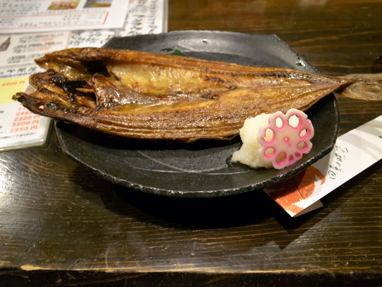 すすきのにある老舗の居酒屋。土曜日に行きましたが、地元の人や観光客でにぎわっていました。メニューは名物の魚介類を中心に肉類やサラダなど一通りそろっています、がやはり北海道なので北海道らしくじゃがバター、ほっけの開きを注文。ほっけ、大きさが全然違いますね~。東京で食べるものと比べて1.5倍以上のサイズです。また北海道産の地酒も試してみましたが甘くて美味しかったです。