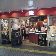品川駅の駅構内、高輪口の1Fにある飲食店です。オープンスタイルで入りやすいカフェで、狭い店内ですがテイクアウトする人も多く、にぎわっています。京急の乗り換え客も多く、店の前はかなりの人通り。パニーニとドリンクのセットがお得です。