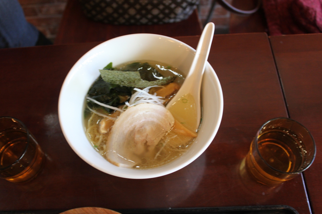 しおラーメン580円。値段も手ごろ、さっぱりとした味だ。