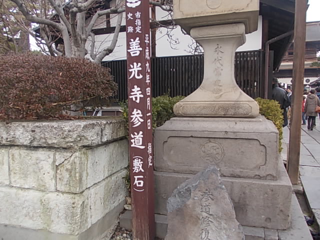 沢山の参拝客で常に賑わっている印象がある善光寺のメイン参道の石畳道は、実は市指定の史跡にもなっていて、現代的な意味ではとても歩きやすく整備されていて、人気観光地善光寺の、”縁の下の力持ち”的な存在になっていますので、是非足元にもご注目下さい。