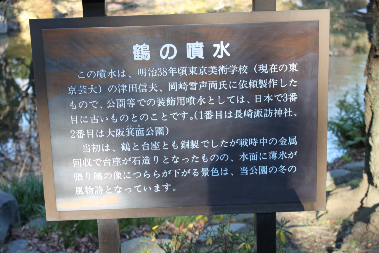 この噴水はこうしてニュースになる位ですから旅で東京に来られ、公園に来たら見学されると良いでしょう。公園の真ん中より西寄り、音楽堂の近くです。ちなみに日本で三番目に古い噴水だそうです。