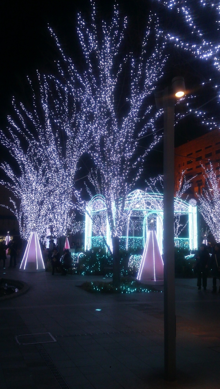 地下鉄の駅から地上に上がると辺り一面がイルミネーションで彩られ