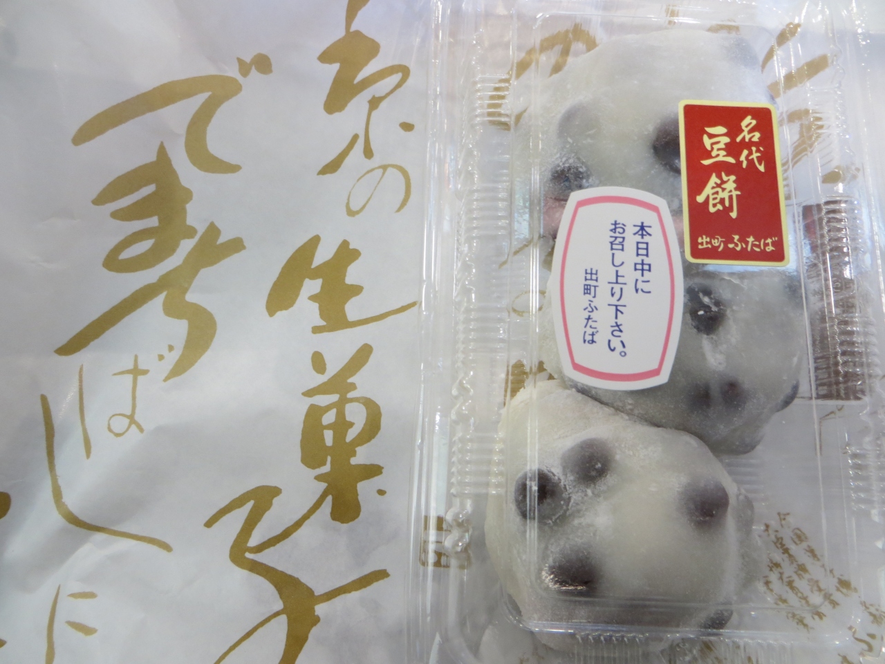 出町にある本店の「出町ふたば」はちょっと遠いので多くはデパ地下で買います。本店に行けばいろいろ種類があるのですが、デパ地下は豆餅1種類のみ。それでも午後には売り切れる程の人気です。今夏は大丸京都店で購入。3個入が510円。あれ、値上がりしたかな。1個160円だったのに。久しぶりの豆餅は期待を裏切らず美味でした。ここの豆餅は京都一だと思います。