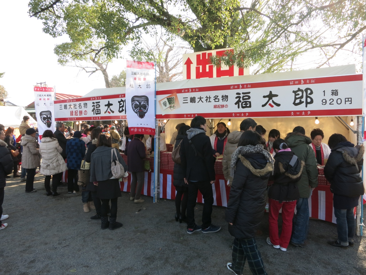 三嶋大社の境内で売られれている縁起餅である福太郎餅を販売しているお店です。蓬餅に烏帽子をかたどったこし餡がのっかった独特な形状をしています。初詣に行った際に名物と言うことで買いました。境内の色々な所に出店が出ていましたが、駐車場の脇に茶屋があります。
