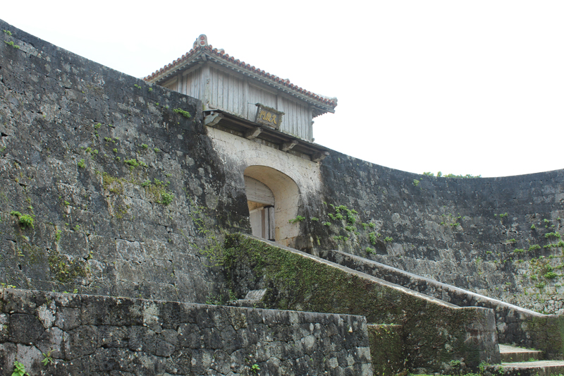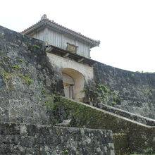 ゆいレールの首里駅から歩いて、城壁沿いの遊歩道を行くと、最初に見えた門が久慶門でした。ただ入口はここではなく、もう少し行った観会門で、久慶門は現在は見学コースの出口として使われています。ただ、昔は通用門として、日常の出入りはここが使われていたようです。