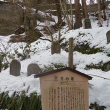 したためた短冊をこの地に埋め石の塚を立てたもので、それ自体はたいしたことないのですが、私はココまで来た時に「あぁ山寺まで来たんだな」と実感できました。