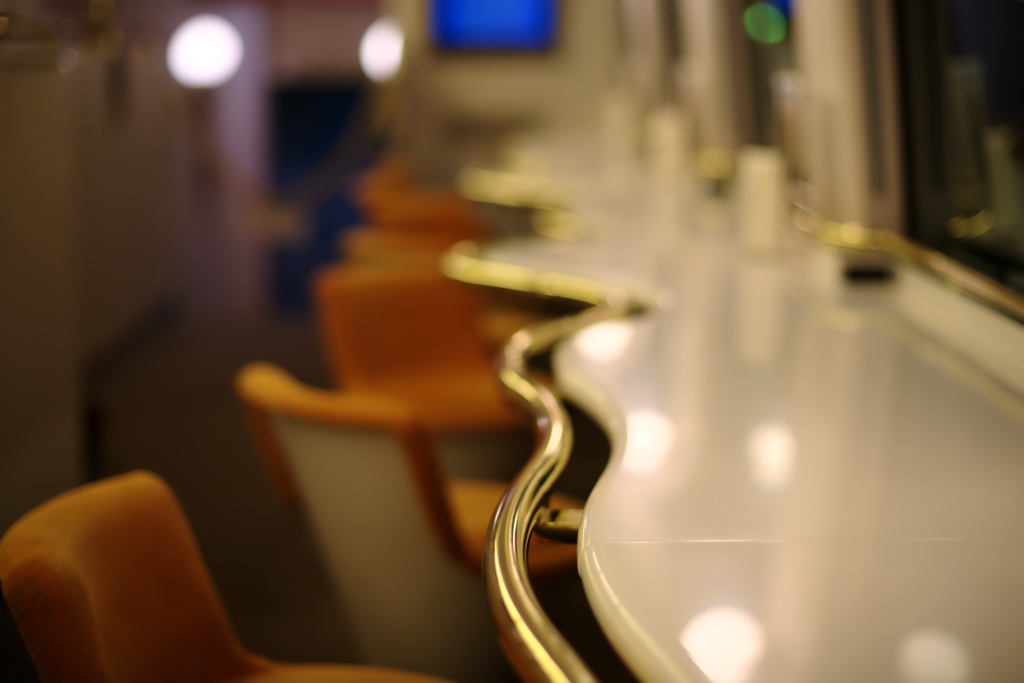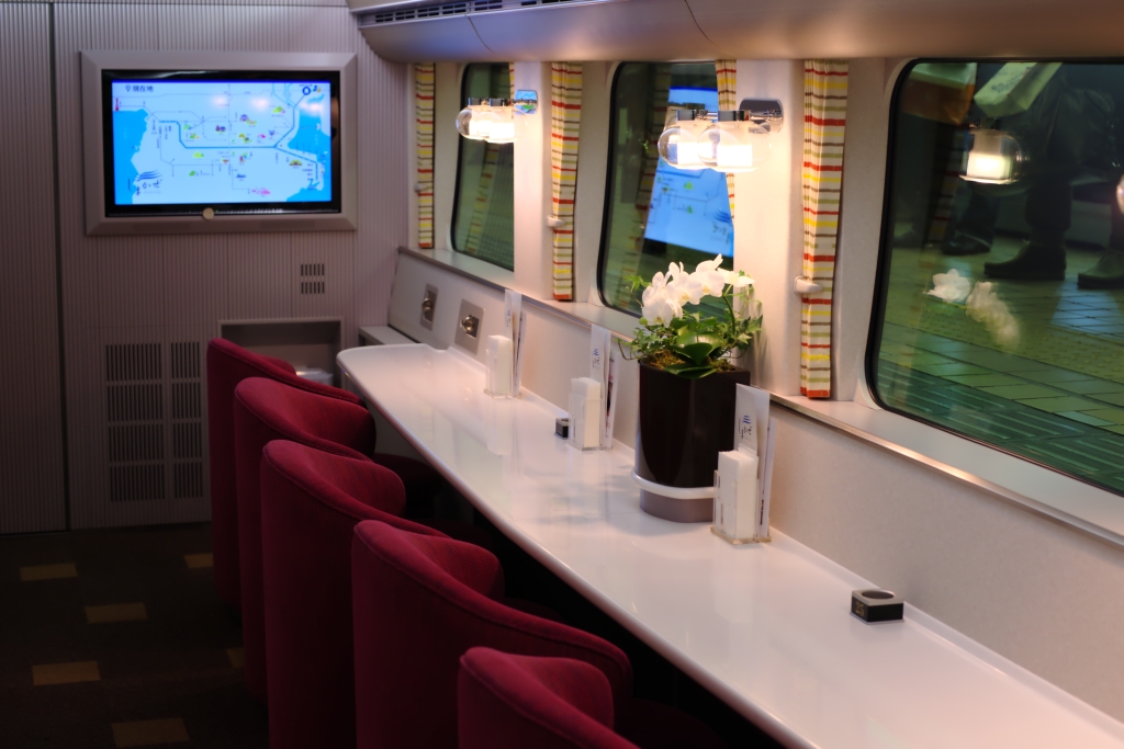 大阪発着列車4号車/名古屋発着列車3号車には、公式には「カフェ車両」といわれるビュッフェが営業を行っています。このビュッフェは、いつも「列車」に乗る人にとって、「列車の中」というイメージを覆すほどに快適でムードある空間に仕上がっています。日本では他に一部寝台特急でしかできないと思われる経験、一度してみると…列車旅の世界が変わるかもしれません。