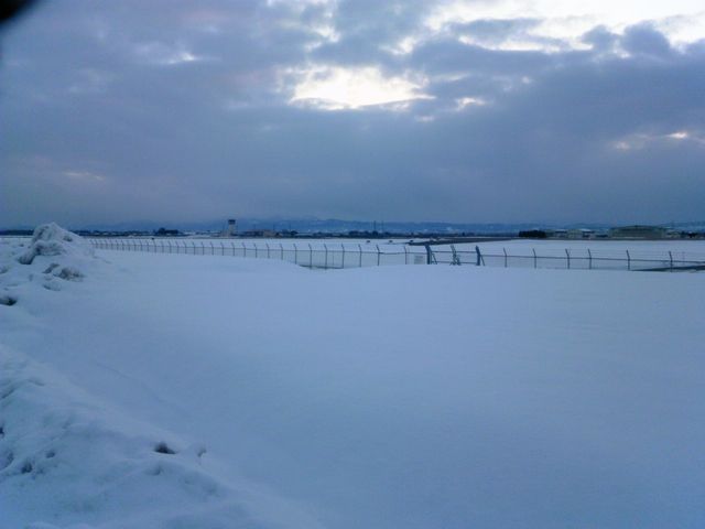 空港の北側から歩いて行ったのですが、雪のある季節は駄目です。まず車道を歩いて行く羽目になり危ないです。そして目的地の公園も公衆トイレ入口付近こそ除雪してましたが、雪に覆われてました。ちなみにちょうど公演の向いが自衛隊の第六飛行隊だかの駐屯地らしく、冬に雪道を歩いていたら不審者に思われたのか、自衛隊員が一人私と同じ歩調でマークする感じで基地のフェンス沿いに歩き出しました。
