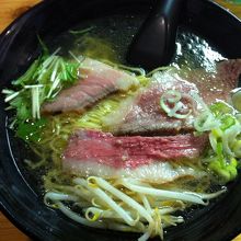 きれいなスープはコクがあり、ローストビーフのようなお肉も美味。