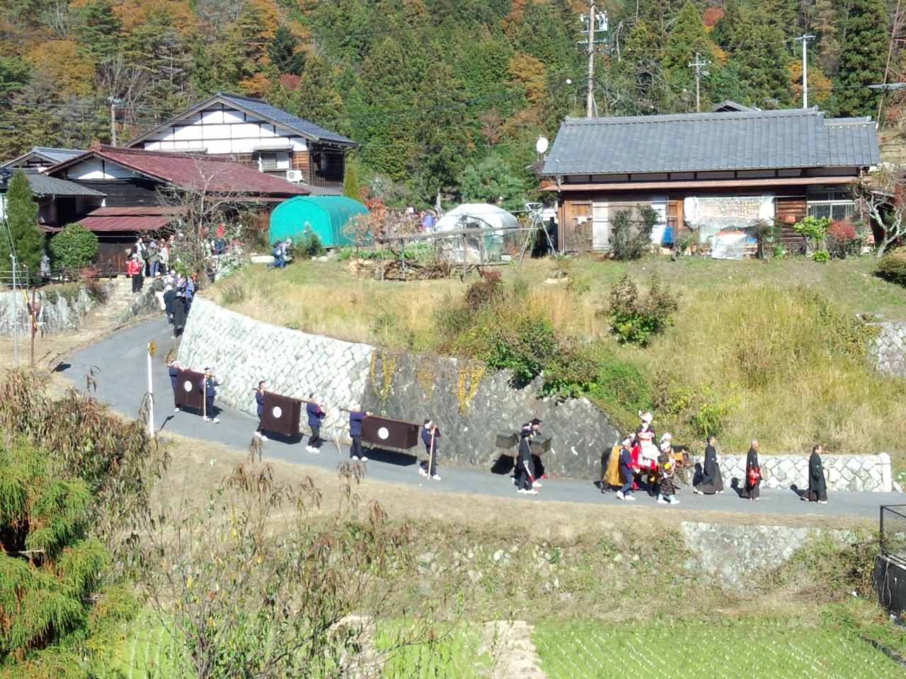 毎年11月23日の勤労感謝の日に行われており、地元の住民130名程の人々が、武士・浪人・鳥追い女・駕籠かき・飛脚・虚無僧などに扮して、文化文政時代の宿場の風俗を再現します。ほとんどが地元の人々ですが愛知県から毎年参加したりしている人もいます。