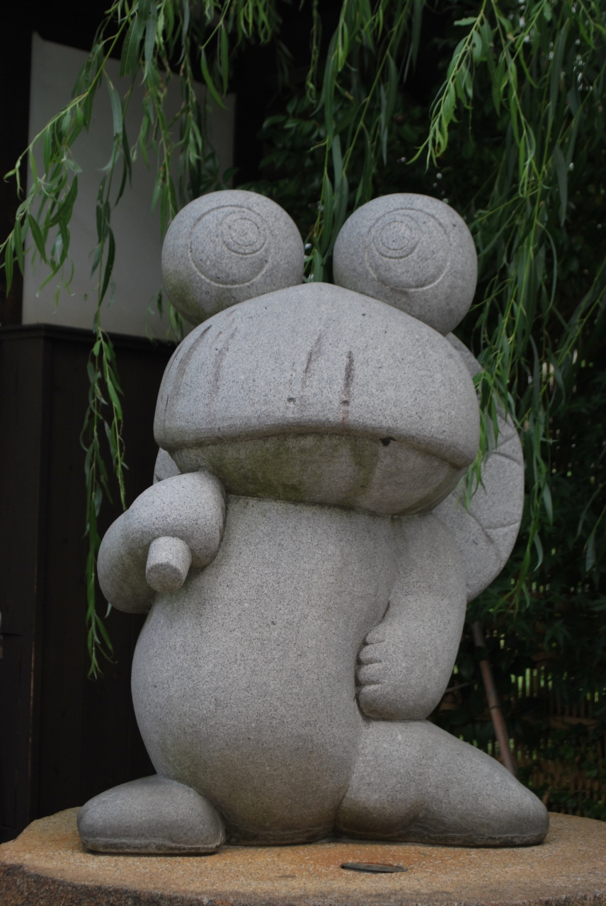 なわて通りの真ん中に鎮座する「カエル大明神」のお詣りも忘れずに