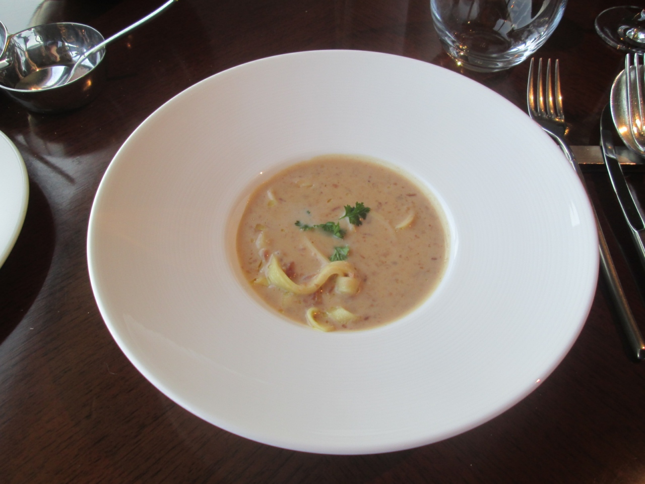 「ANAクラウンプラザホテル神戸」の36階にあるレストランです。客室から36階に到着すると、左右にレストラン入口。オロオロしているとスタッフが寄ってきて、「ご注文はお決まりですか?」と突然の質問。どうやら「Level36」には前菜ビュッフェを含むカジュアルなコースなどが用意されているトラットリア・スタイルの”hiroba”と、より高級なリストランテ・スタイルの”piazza”という2つのレストラン部分、そしてバー”36degrees"という3つの部分に分かれているようでした。「”hiroba”には団体のお客様が…」ということでしたので、静かな雰囲気の”piazza”を選択しました。館内は落ち着いた高級感があり、高層階からの景色素晴らしく、スタッフの笑顔のサービスにも好感が持てました。注文したのはメインメニューによって料金が変わるヴェネツィアランチコースで、メインに”但馬どり”を選んだ私は3500円(SFC会員用割引で3150円)。IHG会員用にいただいたサービス券を利用してスパークリングワインをいただきながら、ゆっくりとした時間を過ごすことが出来ました。ランチではありますが食材も良いものを用いており、料理も丁寧に作られていることの分かるもので、当然美味しくいただけました。夜はグッとロマンチックになりそうなので、大人のデートにも使えそうです。
