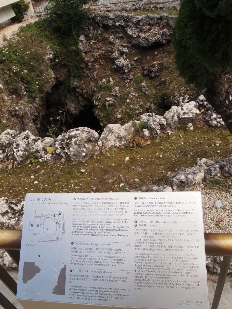 慰霊碑の前にある第三外科壕を覗くと