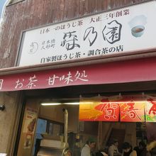人形町・甘酒横丁にお店を構える森乃園さんは通りいっぱいに広がるお茶のいい匂いにつられて、たくさんの観光客が店をのぞいていました。2階は喫茶スペースになっていて、茶葉を使った甘味を堪能できます。おすすめはほうじ茶パフェ。