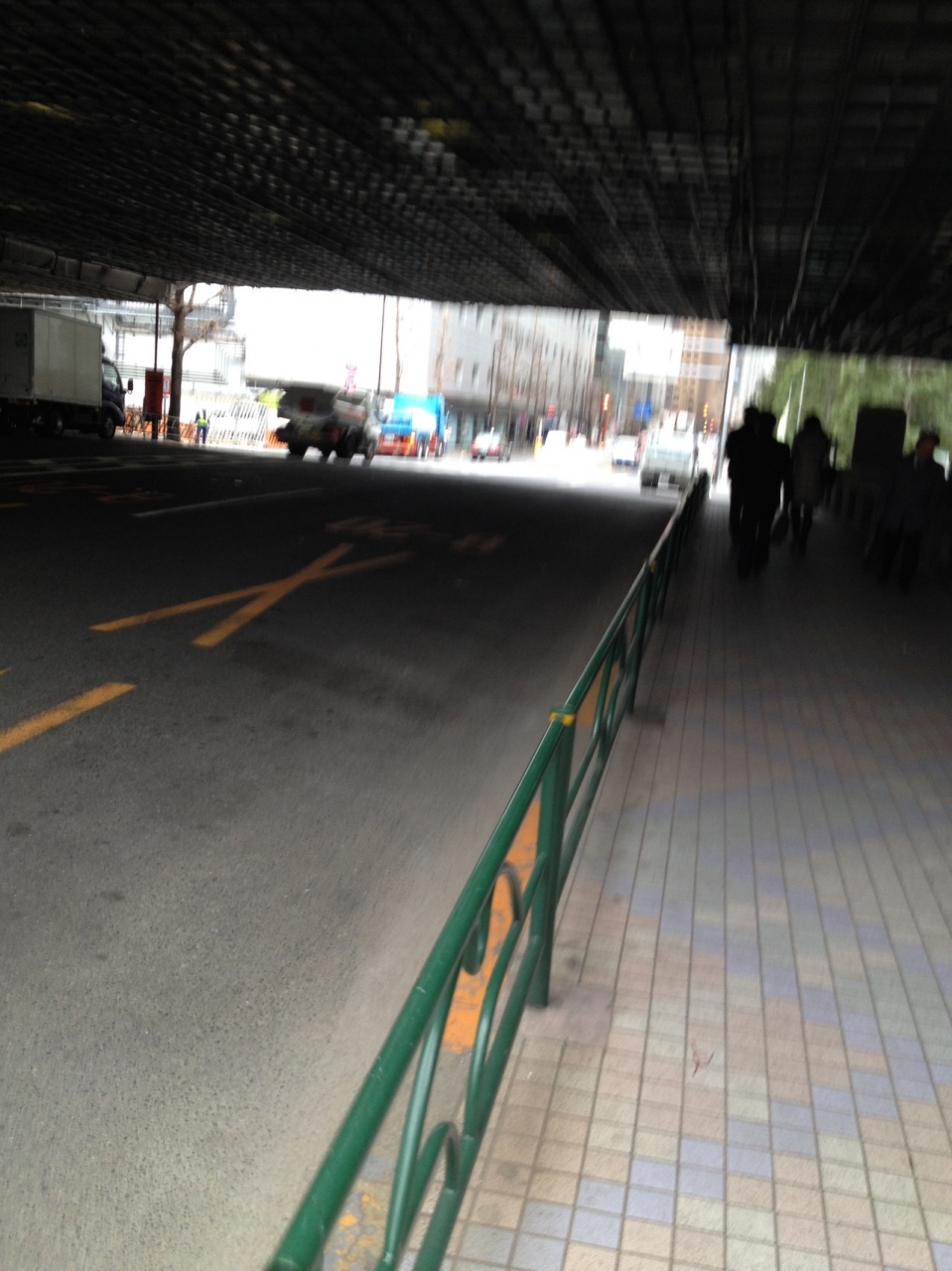 首都高の真下にあり、橋が押し潰れそうなものすごい圧迫感のある橋です。