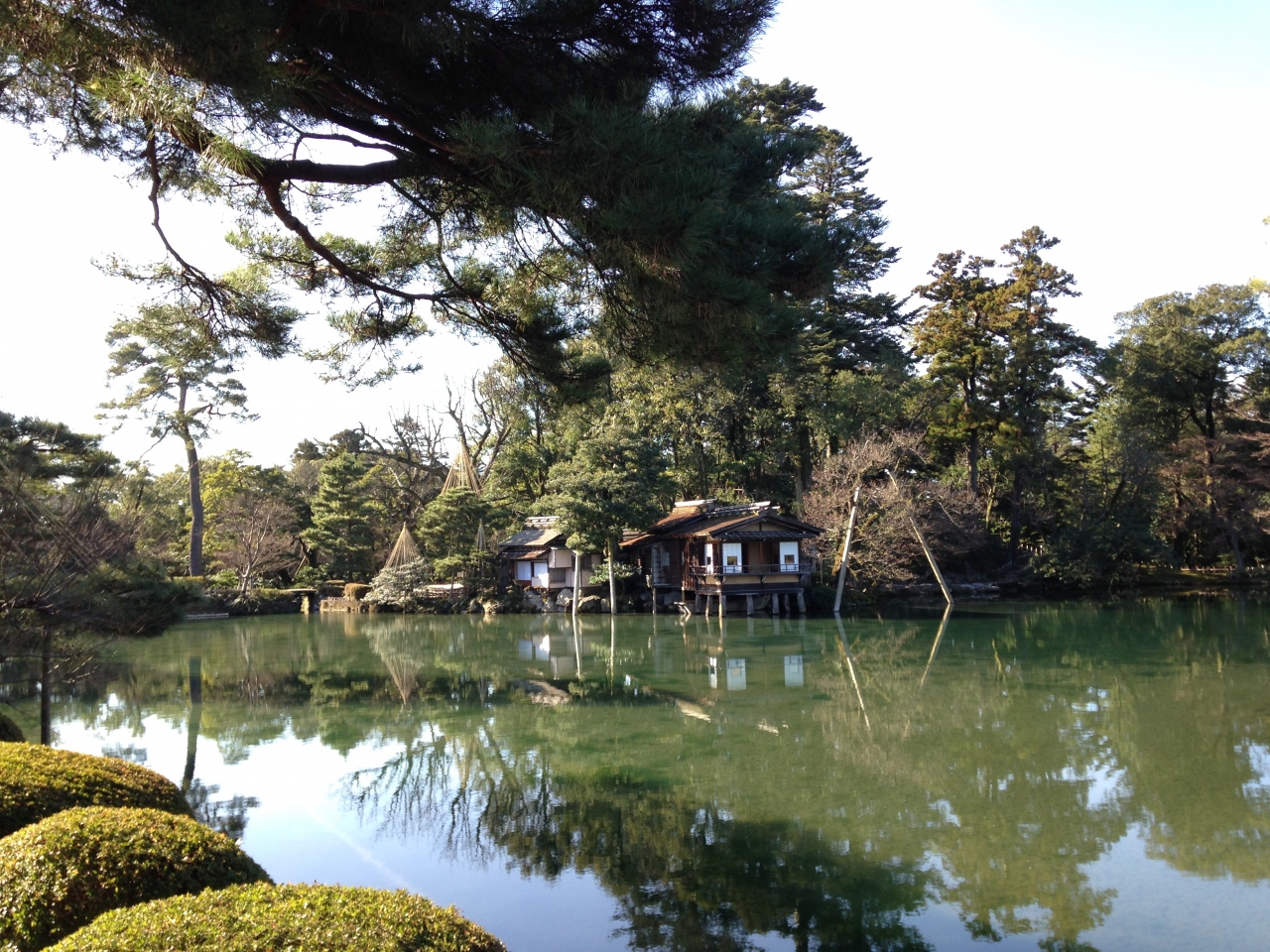 兼六園の霞ヶ池に浮かぶ趣のある建物で、