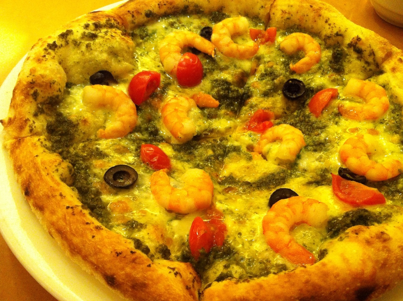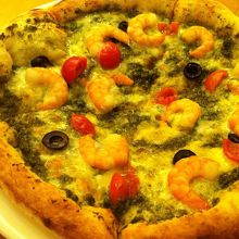 この日は「海老のジェノベーゼ」ピザ(790円)をいただきました。
