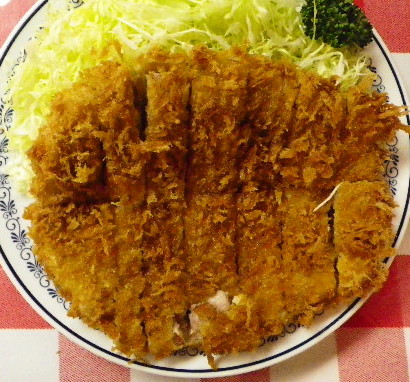ウイーンで名物の薄く大きく伸ばしたビーフカツ、シュッニツェルを食べたが、こちらのとんかつの迫力が上。