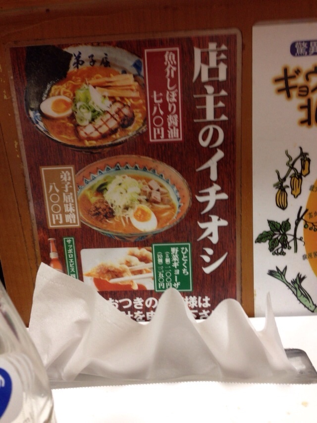 弟子屈ラーメンは、元祖ラーメン横丁にあります。白いのれん、カウンターのみの8席だけ。塩ラーメンが売り切れていたので、北海道なんでも乗せラーメン味噌味を食べました。味が強すぎる感じ。店員の方は1人でしたが、とても良い接客します。
