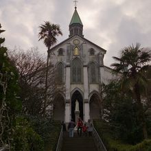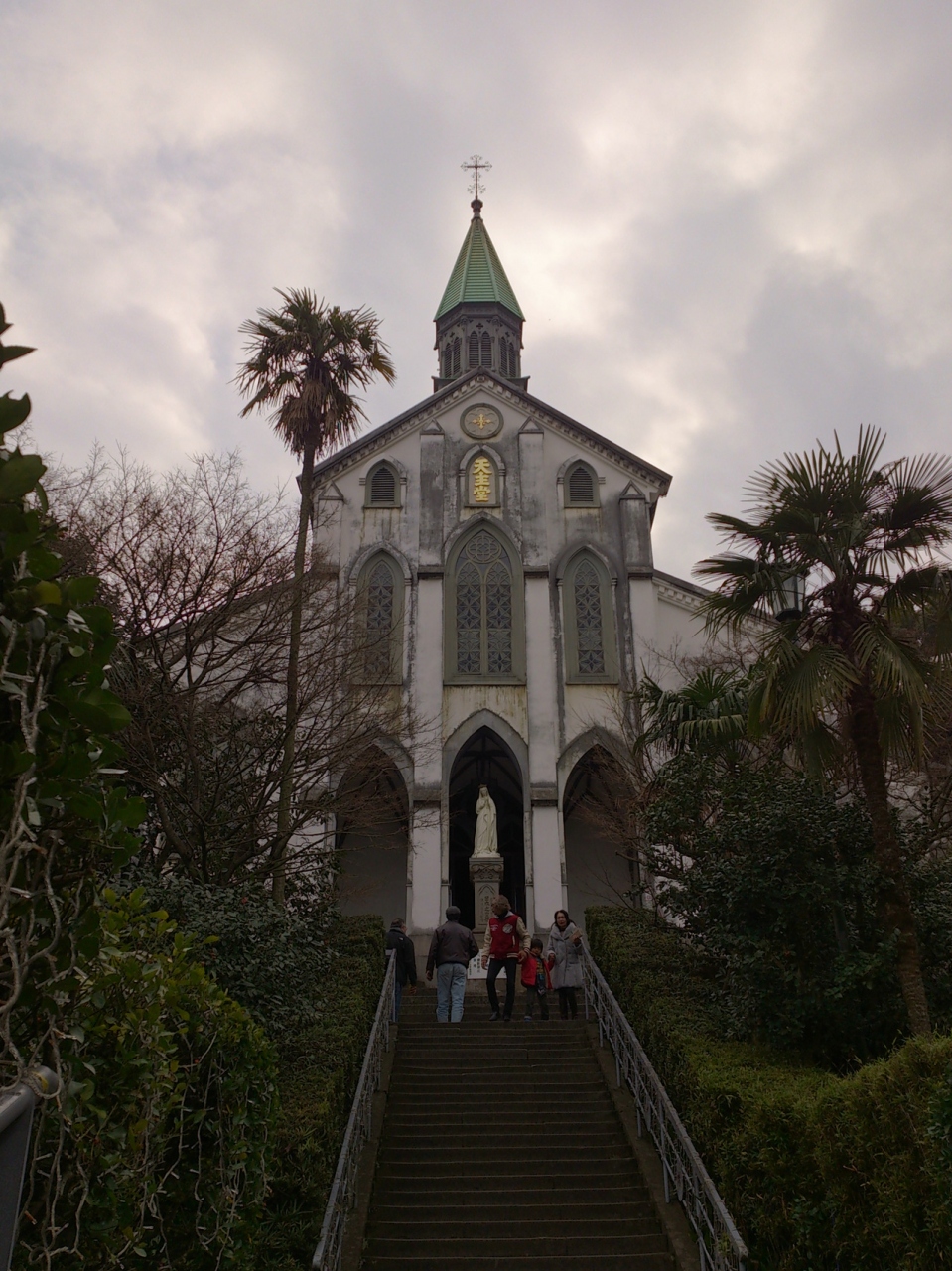 長崎の丘の緑を背景に目の前には美しい港、そしてその中間に白く輝く天主堂のファサードと、とても絵になります。