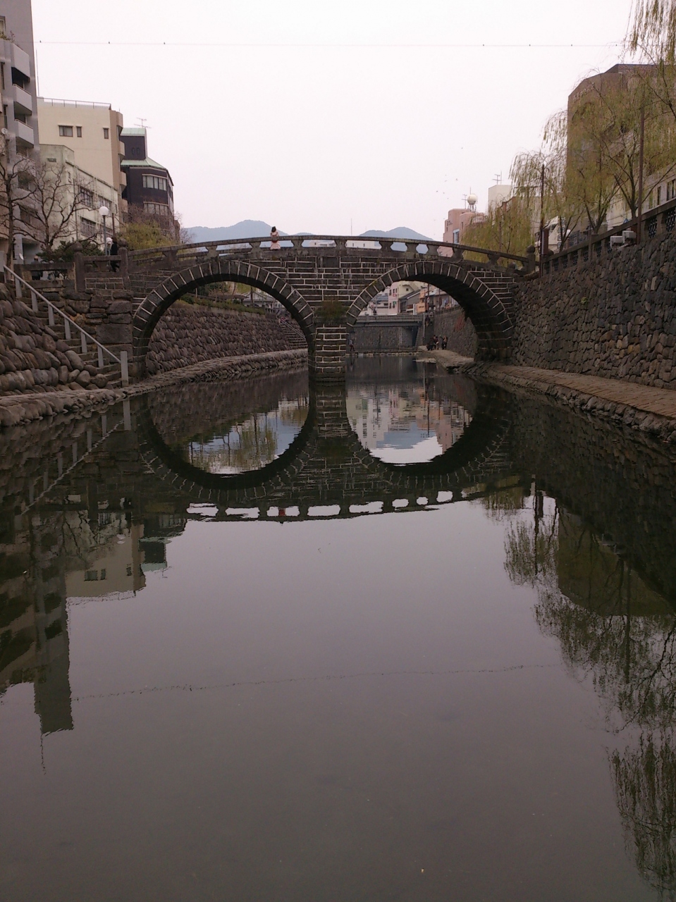 長崎名物のひとつ、日本最古のアーチ型石橋です。