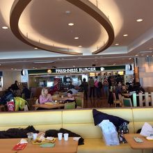 国際線と国内線の通路がある4階にあります。ウッドデッキのフードコートは高級感があり、高さもあるので、イスから、滑走路が良く見えるように、設計されています。入っているお店も、いろいろなジャンルがあるのでいいです。