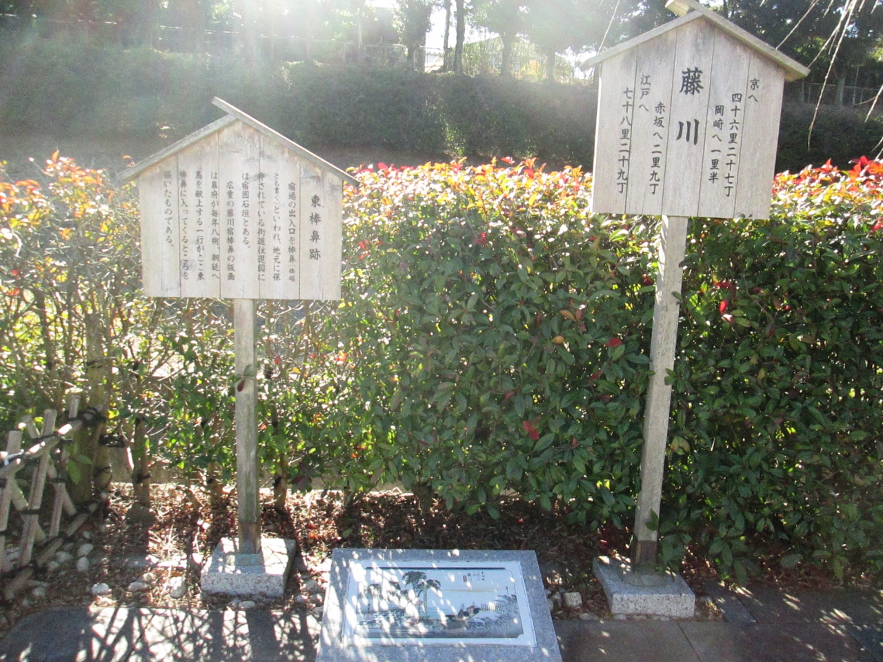 東海道五十三次の中の宿である藤川宿は、現在、国道1号線を横にはいったところの街道になっています。入口は再現された東鼻棒と呼ばれるところです。安藤広重の東海道五十三次にも表されています。この先西鼻棒という場所まで街道は続きます。途中、本陣跡(資料館になってます)や十王堂、芭蕉句碑などがあり、宿専用の駐車場に車を止めて散策される方も多いようです。