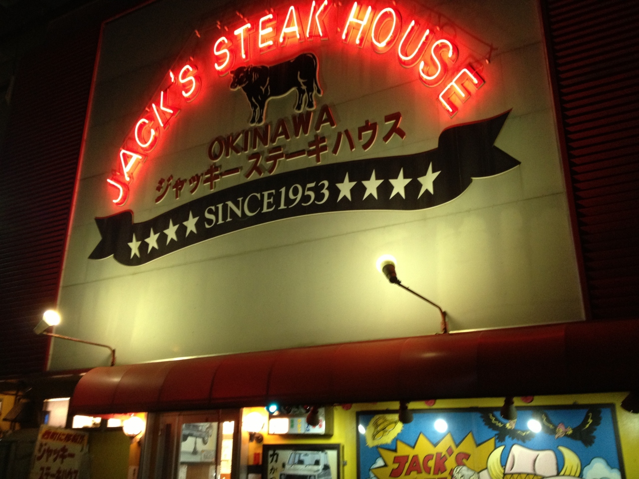 自分の中では、沖縄の定番、ジャッキーステーキハウスです。ステーキは噛みごたえのあるタイプです。ステーキ&オリオン生の組み合わせを利用することが多いですね。ダブルツリーByヒルトンに泊まるとアクセスも簡単です。