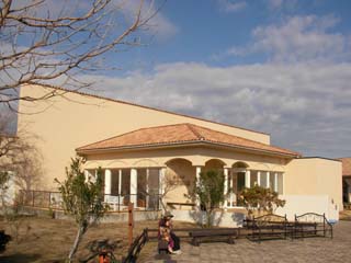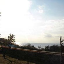 浴室は、台地の端にあり先ほど歩いてきた特養老人ホームの先に海が広がっていて、内湯は横に長いグリーンの薬湯で、ドライサウナと水風呂があり、露天エリアに出ると正面に海が広がっていて、岩風呂からは生垣越しに海が見えて、やや熱めの3人分の寝風呂があり青空の下で夕日に照らされてよい気分です。公園や海岸が近くにあり、温泉ではありませんが、眺めのよい露天風呂から夕日が見られよい施設です。