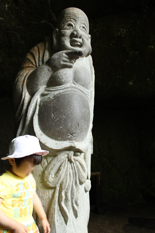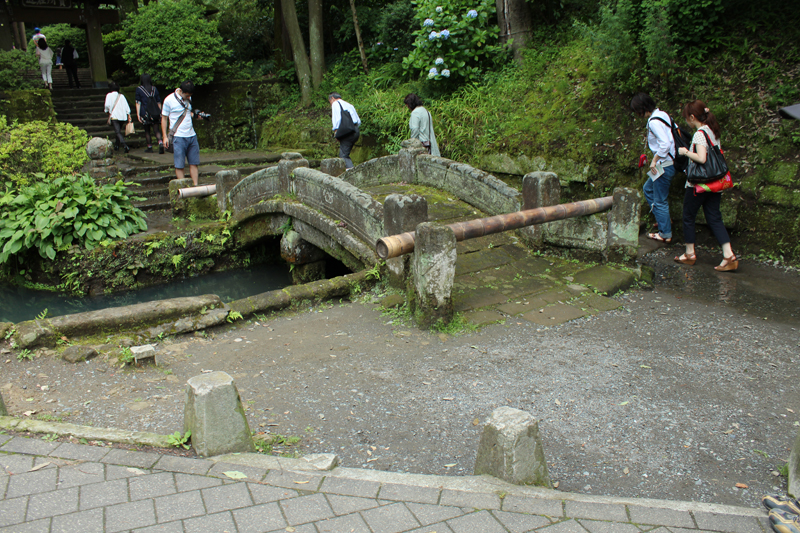 鎌倉五山第四位のお寺ですが、今はあまり大きなお寺ではありません。山門の前には、苔むす石橋があり、そこをとおっていくと総門があり、入場料を払って境内に入ります。鐘楼のある山門があり、その先に仏殿があります。仏殿の裏には庫裡の間が庭園のような。庭園でないような場所が草ぼうぼうのようになってあります。庫裡の裏には横井戸や狸塚があります。順路に沿っていくと、布袋さんがあり、みんながおなかをなでていくせいで、おなかが光っています。