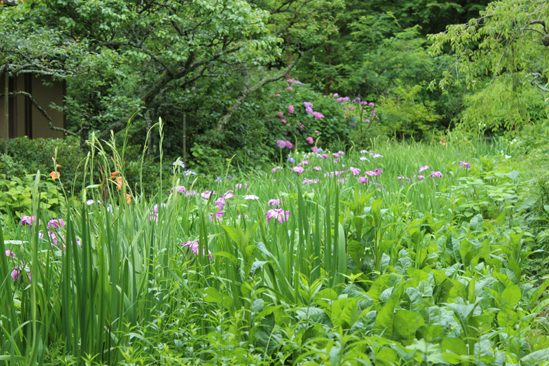 東慶寺の境内の中央付近、白蓮舎の前に花菖蒲が咲いている一角があります。6月上旬が花菖蒲には良い時期でしょうか。アジサイよりちょっと早めです。規模はとても小さく、明月院の1割程度の広さでしょうか。この時期は花菖蒲より、圧巻なのは、東慶寺では壁一面の岩タバコでしょ。
