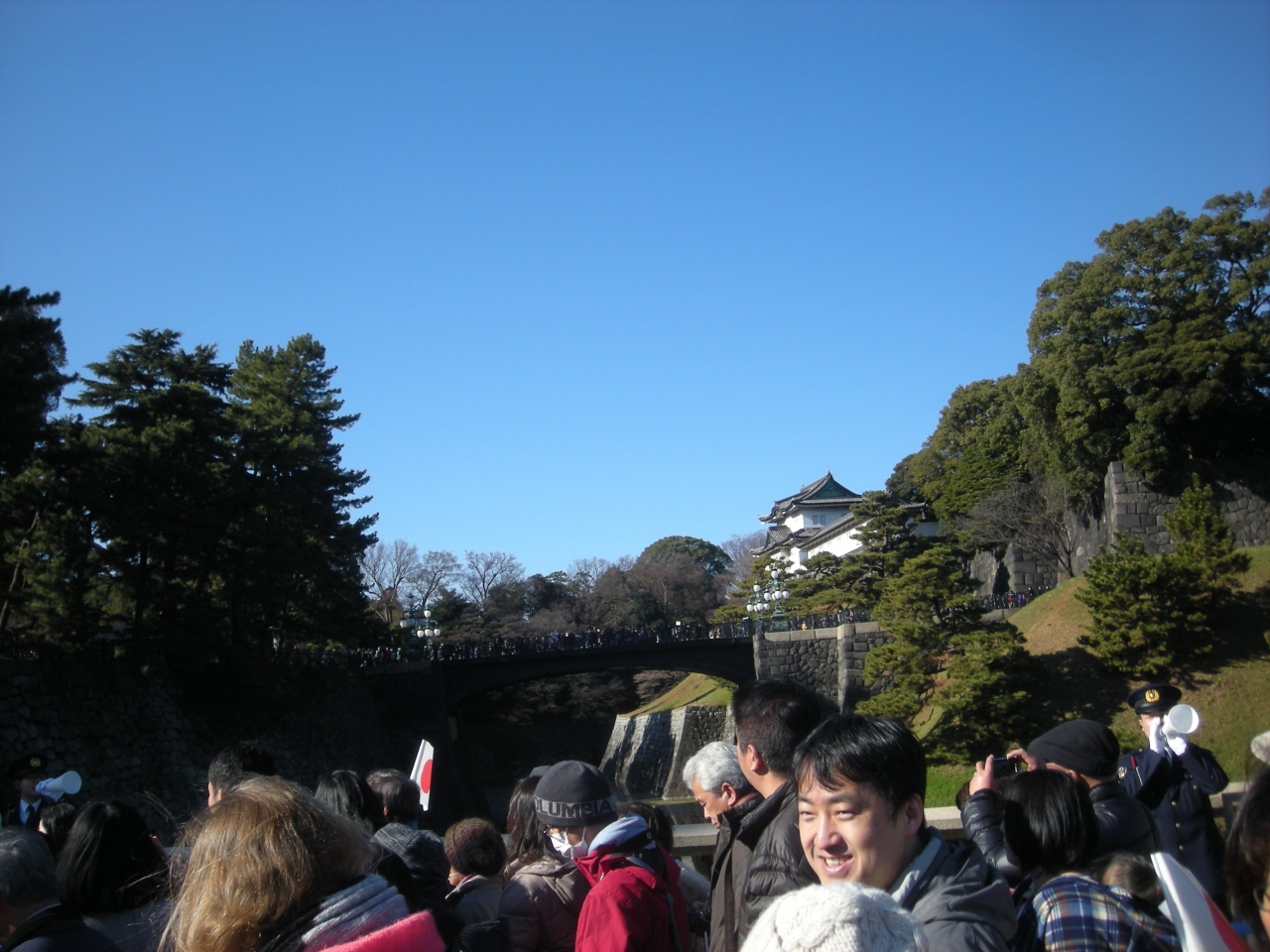 いつもは渡ることができない皇居へかかる橋がここ「二重橋」。ここは、皇居正門から宮殿へ向かう際に、二重橋濠に架かる鉄橋で、本当の名称は正門鉄橋とのこと。今回は正月の新年一般参賀に行った際に、混雑の中、渡ることができました。なんでも、この橋は、江戸時代には橋桁を上下二重に組んで橋の上に橋を作っていたために「二重橋」と呼ばれていまとのこと。今では、鉄製の橋になりましたが。