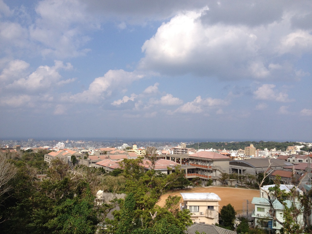 ゆいレール首里駅から首里城までは別のルートもありますが、足腰に自信があれば、こちらのほうが景観が優れているためオススメです。首里駅側から入園し、最初の坂を登り切ると左右に素晴らしい景色が広がります。もちろん遠くにはエメラルドグリーンの海も。日陰もありますが、夏は直射日光が当たるため気をつけて!