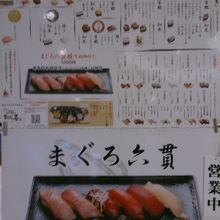 まぐろが自慢の回転寿司店