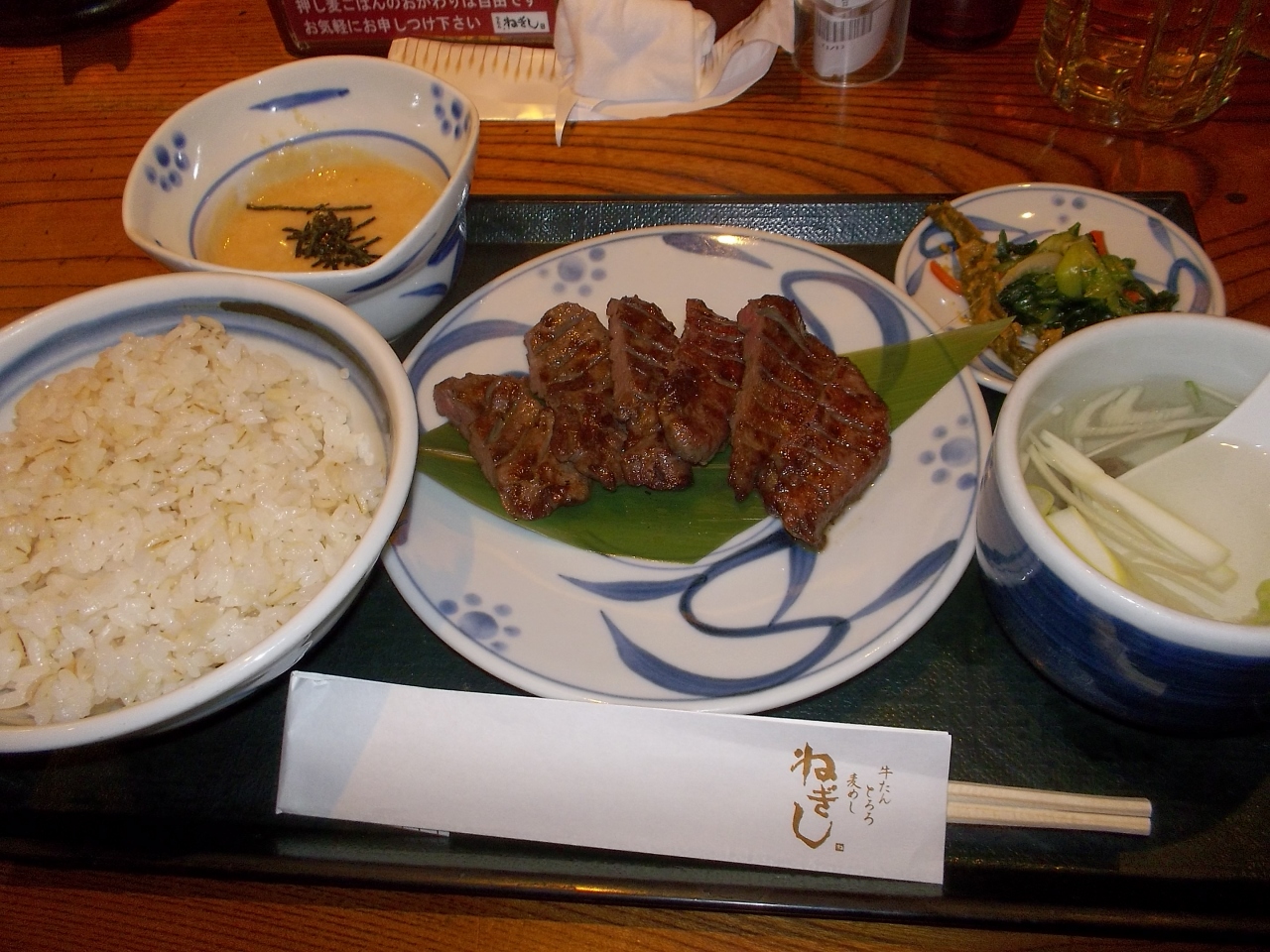 本格的な「厚切り牛タン」に「テールスープ」「麦とろめし」のセット。目の前で焼いたやわらか牛タンを炭火で焼く香りは、出てくる料理を待ち切れず食欲を誘います。ビールには良く合い何杯でも飲めてしまいそうなか感じです。