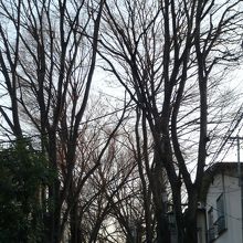 住宅街の中にある並木としてはちょっとびっくりするくらい大きなケヤキで、この並木が古くからあることを感じます。落葉などで周囲の住宅は清掃が大変だと思うのですが、とても綺麗にされていました。
