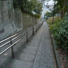 目白通りを曲がって神田川に向かう、神田川沿いの道と面した場所にある急坂です。