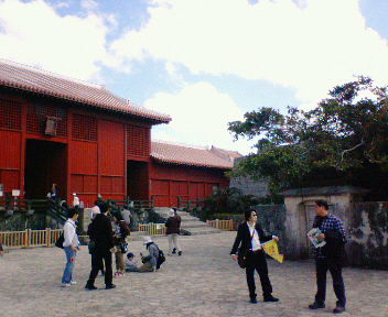 首里城正殿のある「御庭(うなー)」への屋敷のような門で、この先は有料のため、中央の出入り口に改札があります。