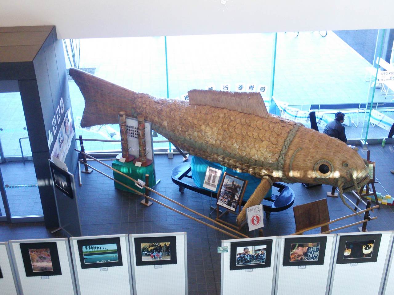 一階なねは、ワラでできた巨大な魚が、展示されていて圧倒されます。
