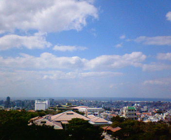 近くには沖縄らしい赤い瓦屋根や那覇の市街地、遠くには視界一杯の水平線と南国の空が広がり、かなりいい眺めを楽しめます。