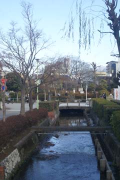 三島駅から近くにある湧水を巡ると、鏡池から少し東に進むと、住宅地に囲まれた中に池に鴨が泳いでいる静かな菰池公園があり、一角に富士山の伏流水の湧水があります。池は桜川の源流で流れ出る水路が続いています。