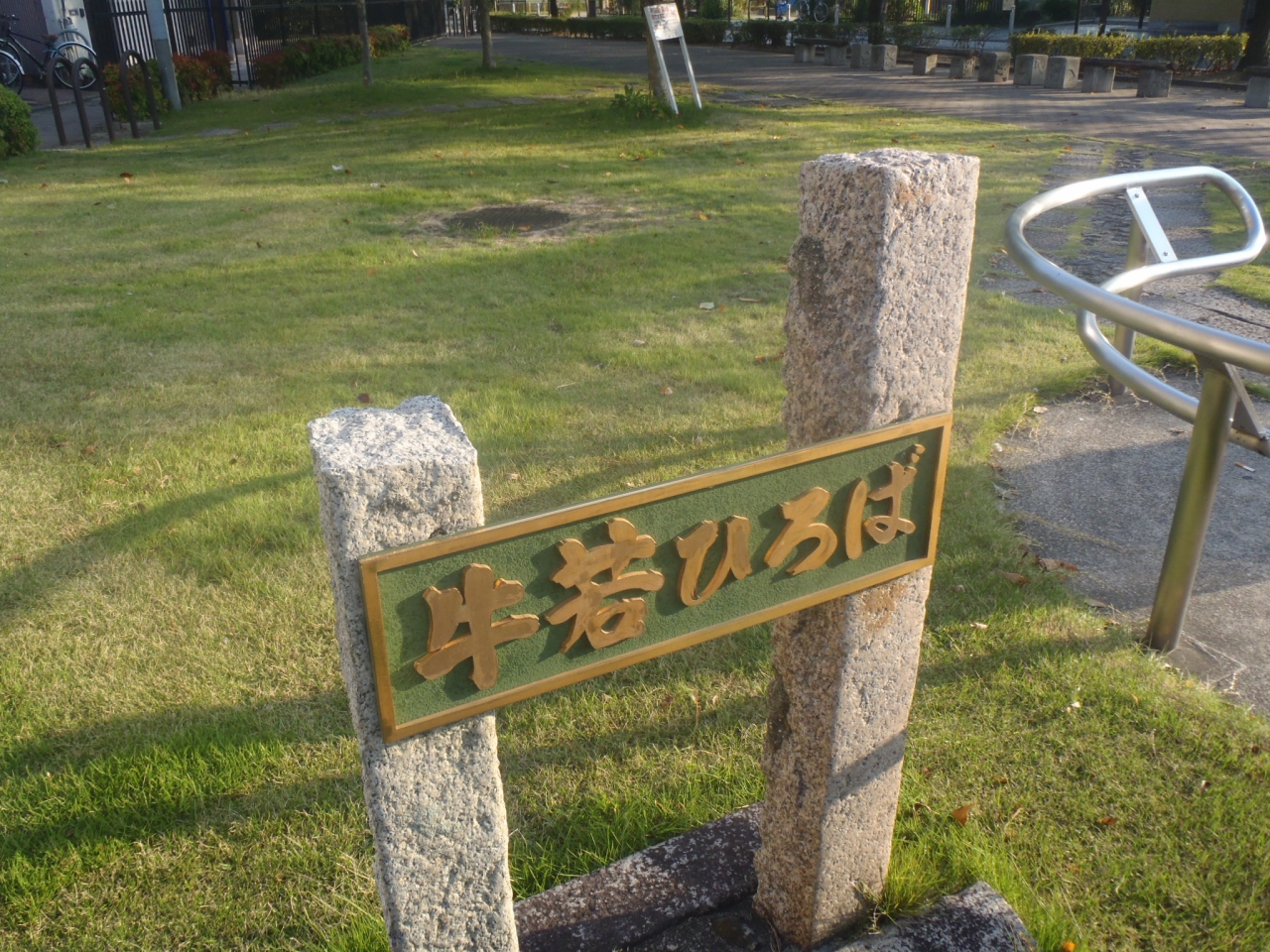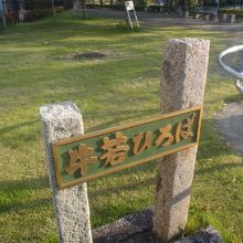 牛若丸と弁慶のモニュメントは、国道の真ん中にある小公園に設置されていますから、遠くからでもよく目だちます。
