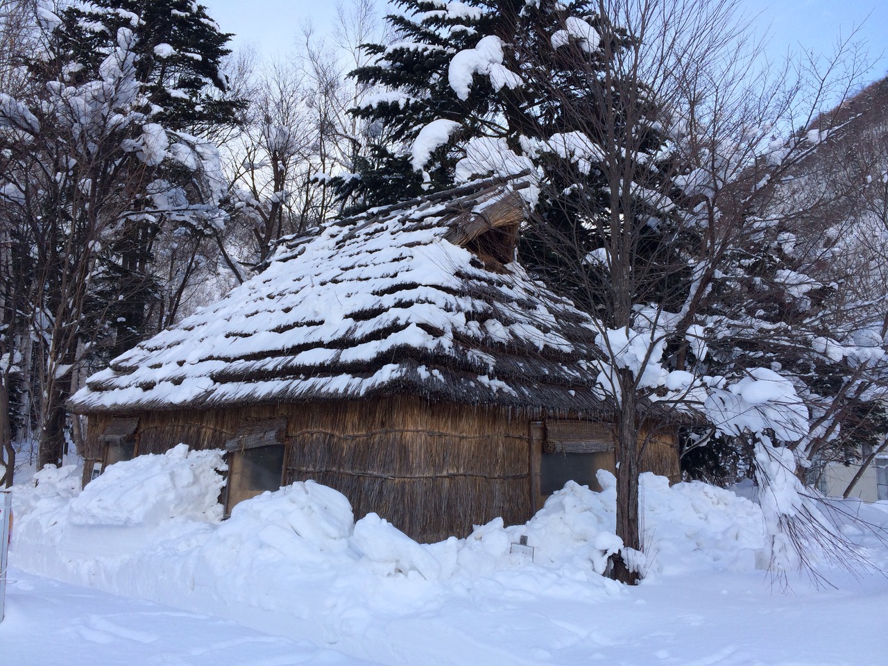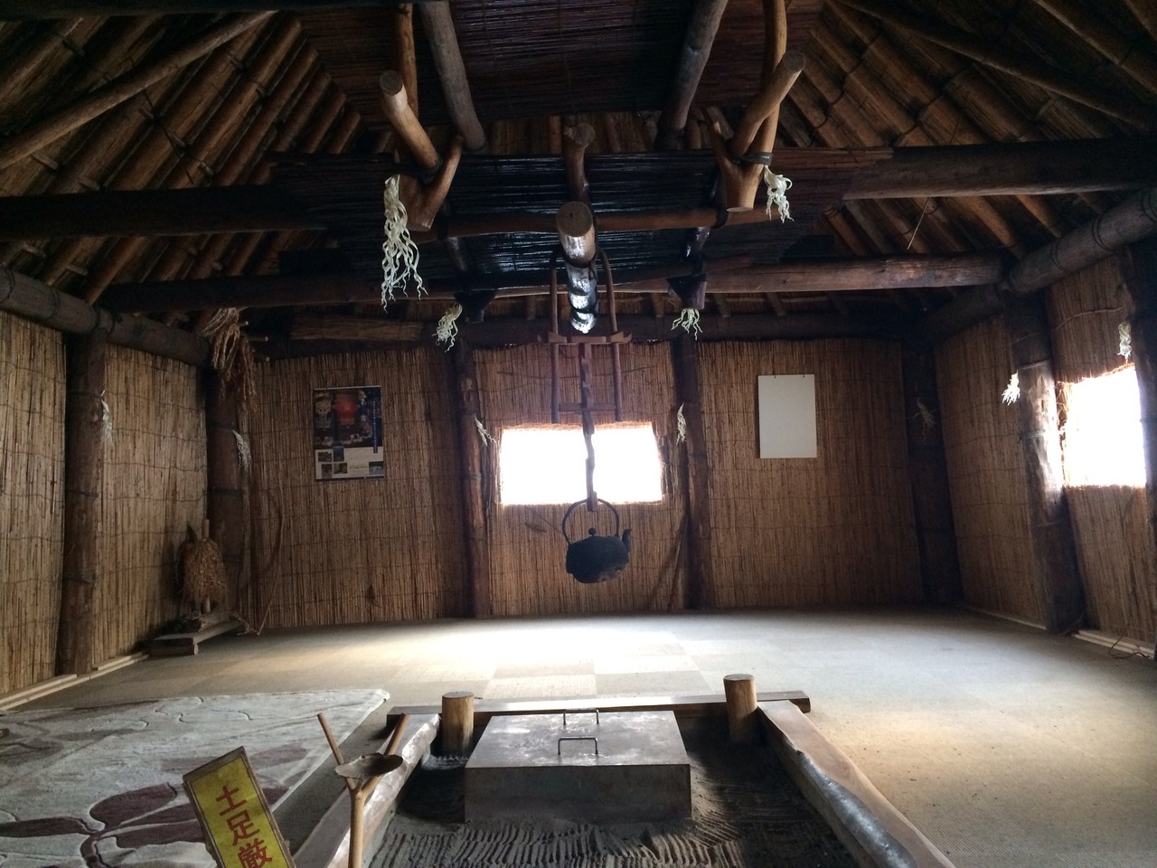 外にはアイヌの住居を復元したものが2棟あり、中に入って靴を脱いで上がることもできます。
