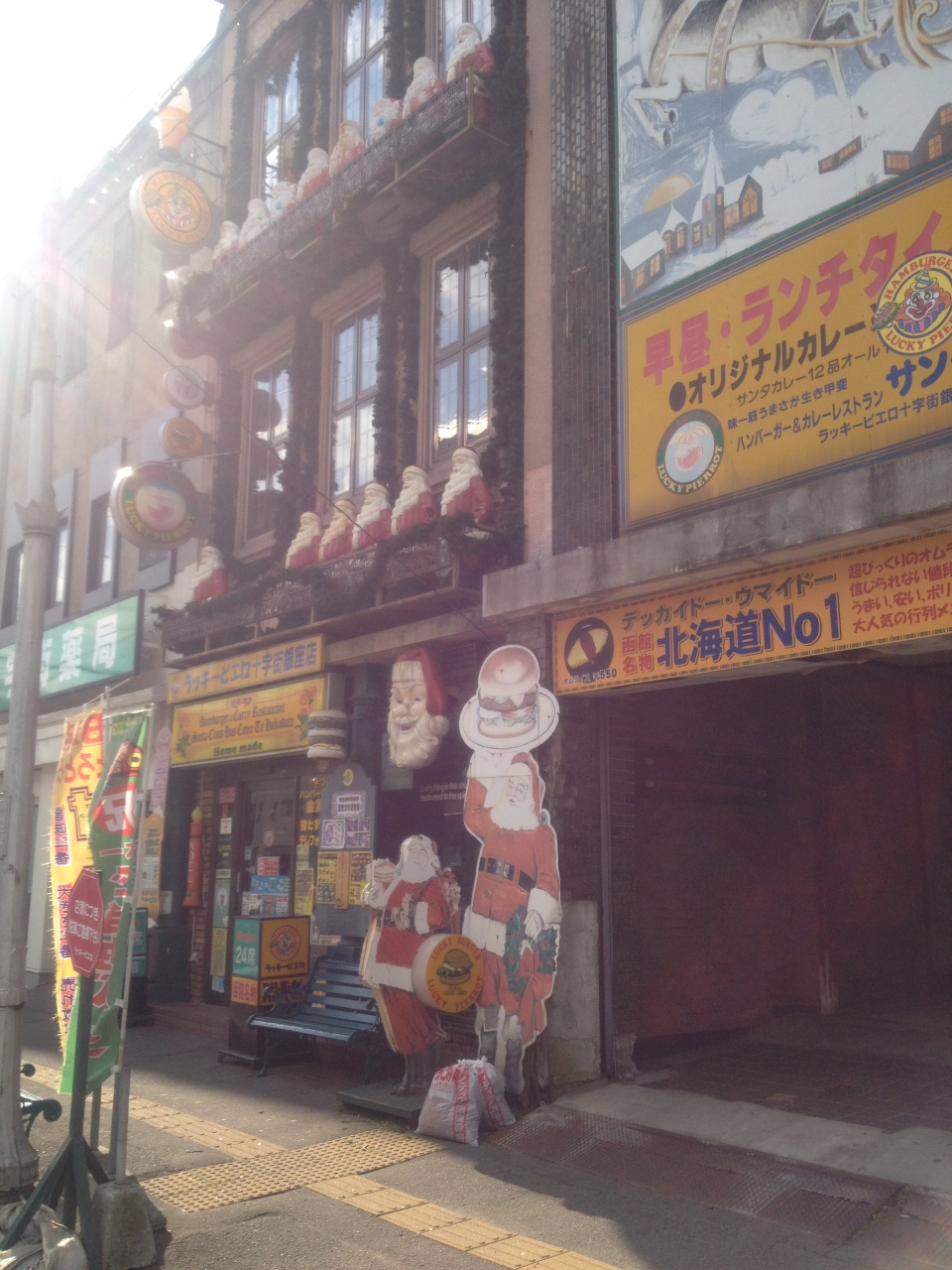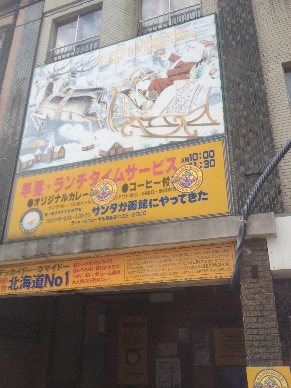 「サンタが函館にやってきた」と、店の外壁にはサンタだらけの店です。