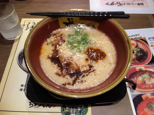 長崎駅でとんこつラーメン。